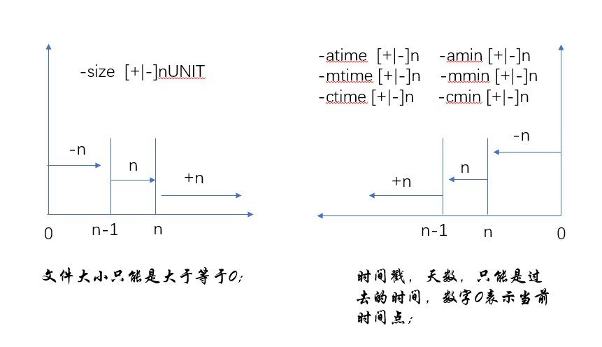 -atime -1 : 大于等于0天,小于1天(24小时)内访问的文件;取值范围,24小时内至当前时间,包括当前时间点;