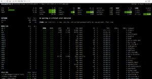a Sort processes automatically b Bytes or bits for network I/O c Sort processes by CPU% l Show/hide alert logs m Sort processes by MEM% w Delete warning alerts u Sort processes by USER x Delete warning and critical alerts p Sort processes by name 1 Global CPU or per-CPU stats i Sort processes by I/O rate I Show/hide IP module t Sort processes by TIME D Enable/disable Docker stats d Show/hide disk I/O stats T View network I/O as combination f Show/hide filesystem stats U View cumulative network I/O n Show/hide network stats F Show filesystem free space s Show/hide sensors stats g Generate graphs for current history 2 Show/hide left sidebar r Reset history z Enable/disable processes stats h Show/hide this help screen 3 Enable/disable quick look plugin q Quit (Esc and Ctrl-C also work) e Enable/disable top extended stats / Enable/disable short processes name 0 Enable/disable Irix process CPU